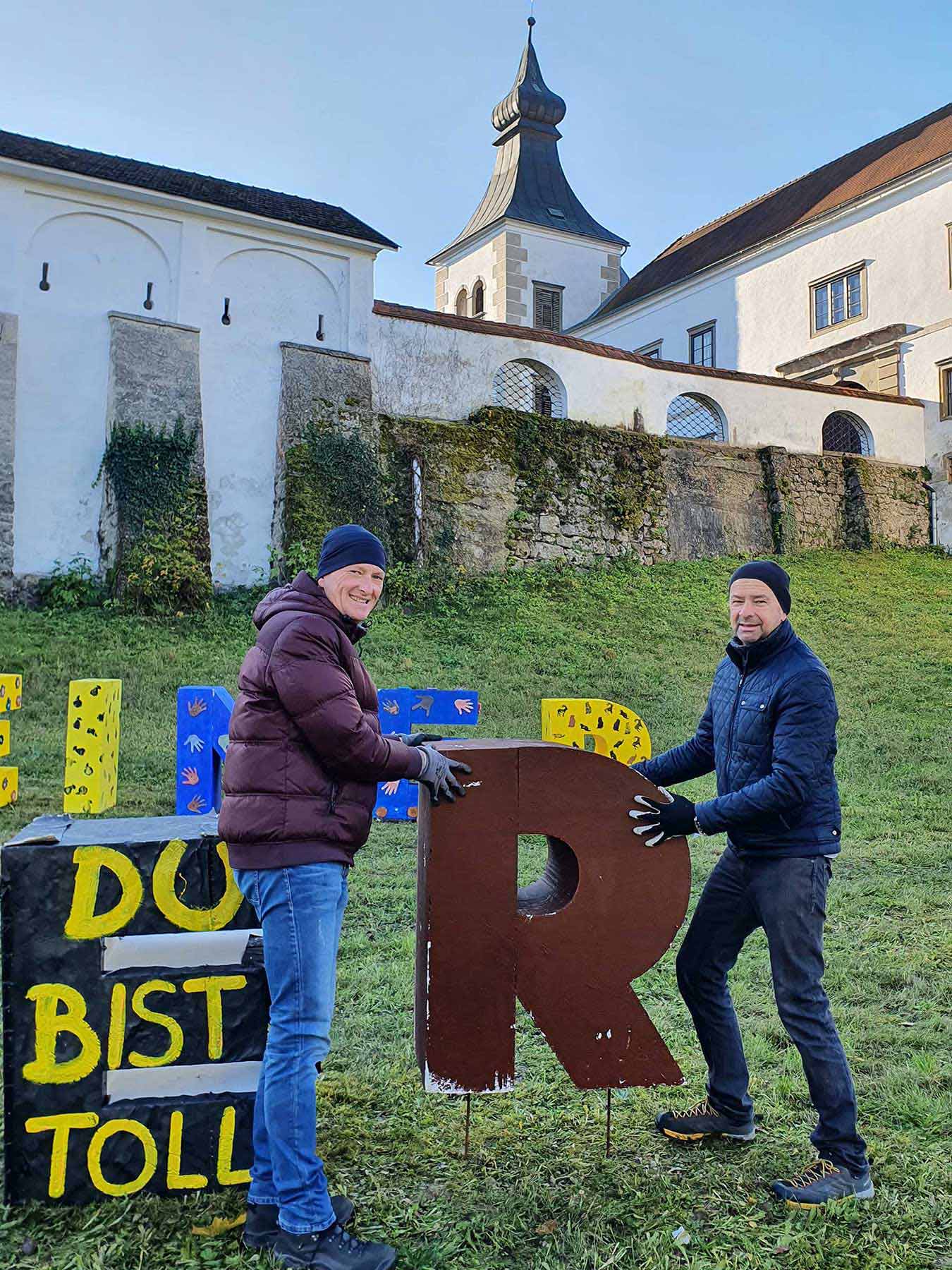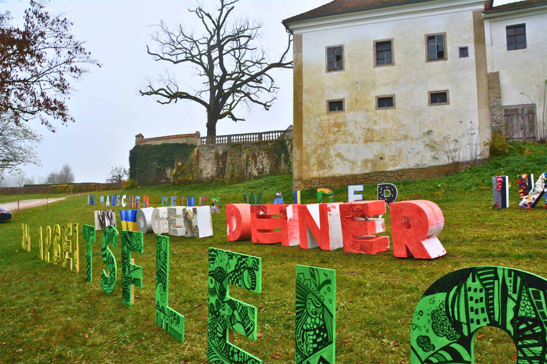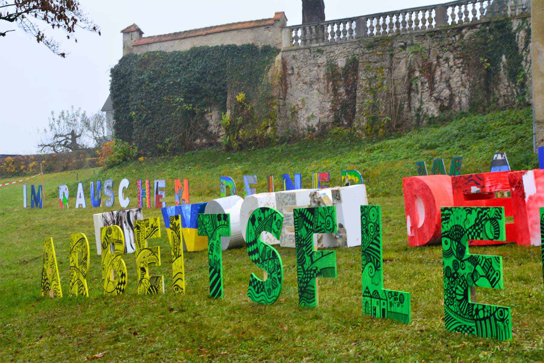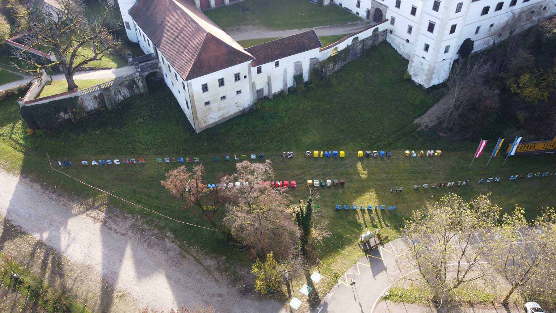 Mit den angefügten Fotos der Auszeichnungsfeier in Haag, wo die Textinstallation nochmal aufgestellt wurde und noch bis Ende des Monats zu bewundern ist, bedanken wir uns für das tolle Engagement und für so viel lebendige Kreativität!