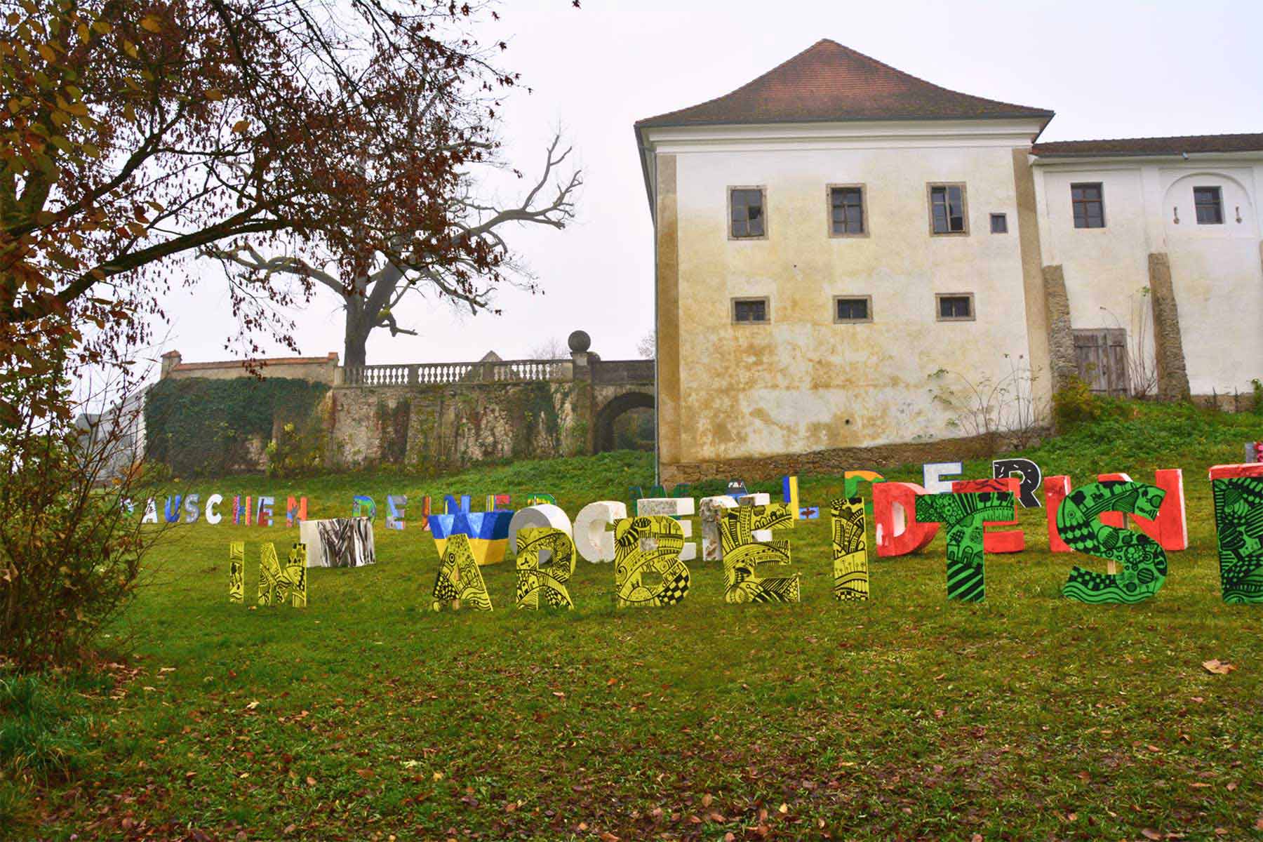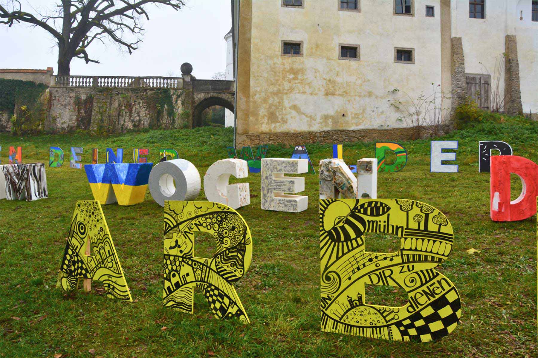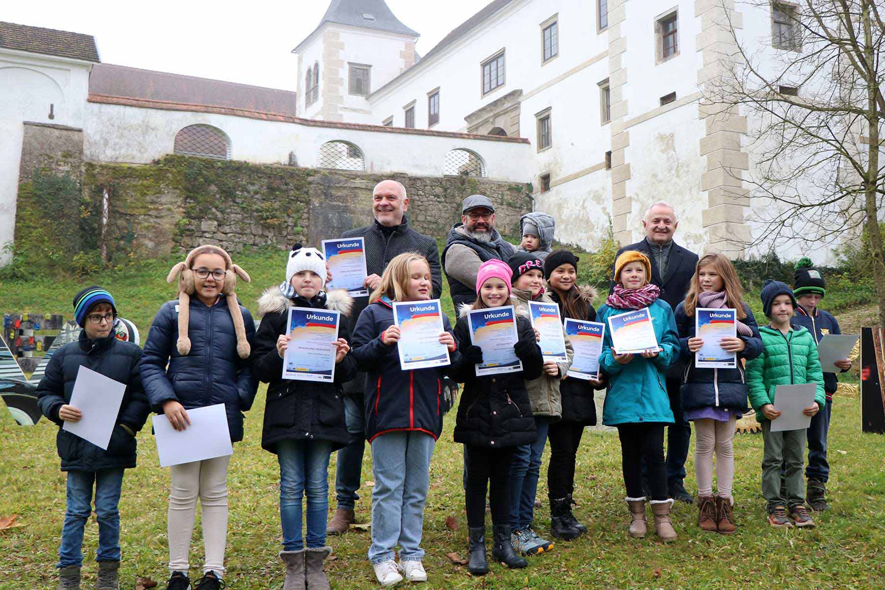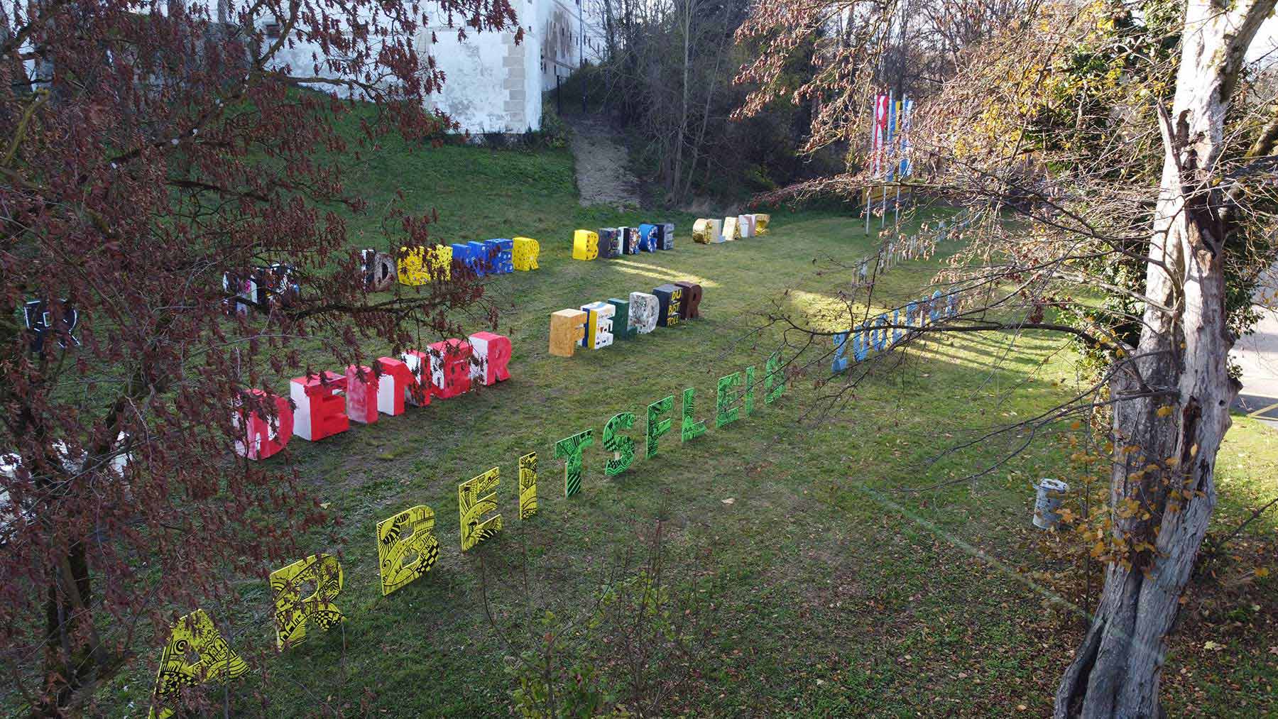 Mit den angefügten Fotos der Auszeichnungsfeier in Haag, wo die Textinstallation nochmal aufgestellt wurde und noch bis Ende des Monats zu bewundern ist, bedanken wir uns für das tolle Engagement und für so viel lebendige Kreativität!